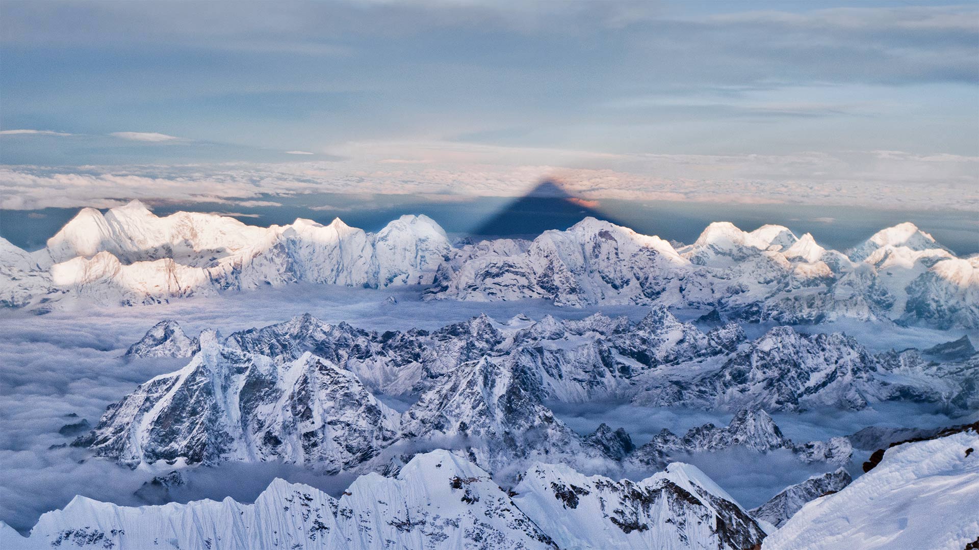 The shadow of Mount Everest over the western Himalayas in 尼泊尔 (© 肯特 Karvey/KH Films, Inc./Tandem Stills + Motion)